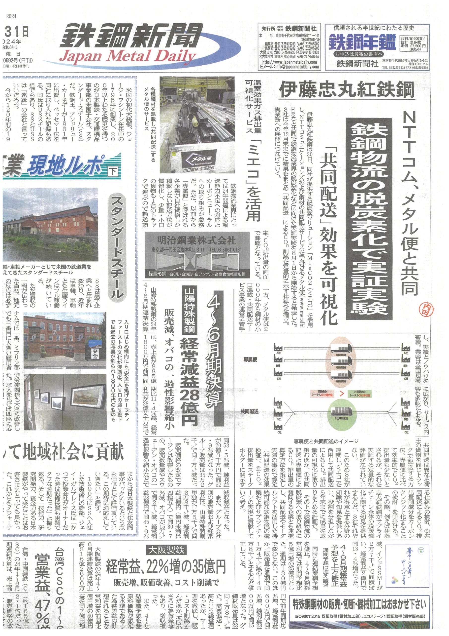 伊藤忠丸紅鉄鋼 NTTコム、メタル便と共同 鉄鋼物流の脱炭素化で実証実験 共同配送効果を可視化 温室効果ガス排出量可視化サービス「ミエコ」を活用
